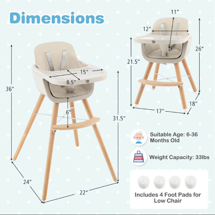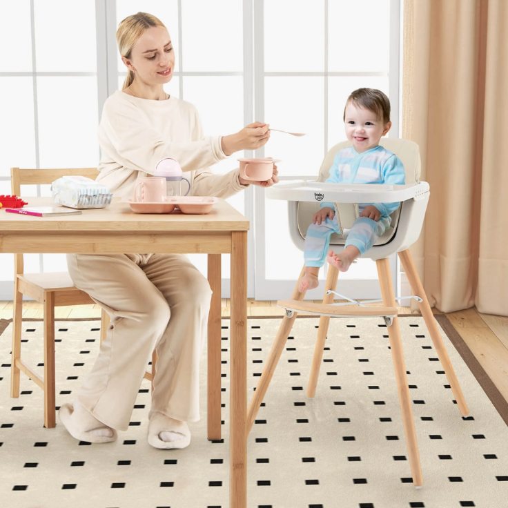 Discover the versatile Babyjoy 3-in-1 Convertible Wooden High Chair from Daiwa LTD. This stylish toddler feeding chair features a soft cushion in beige, combining comfort and safety for mealtime moments that grow with your child. Perfect for contemporary nurseries!