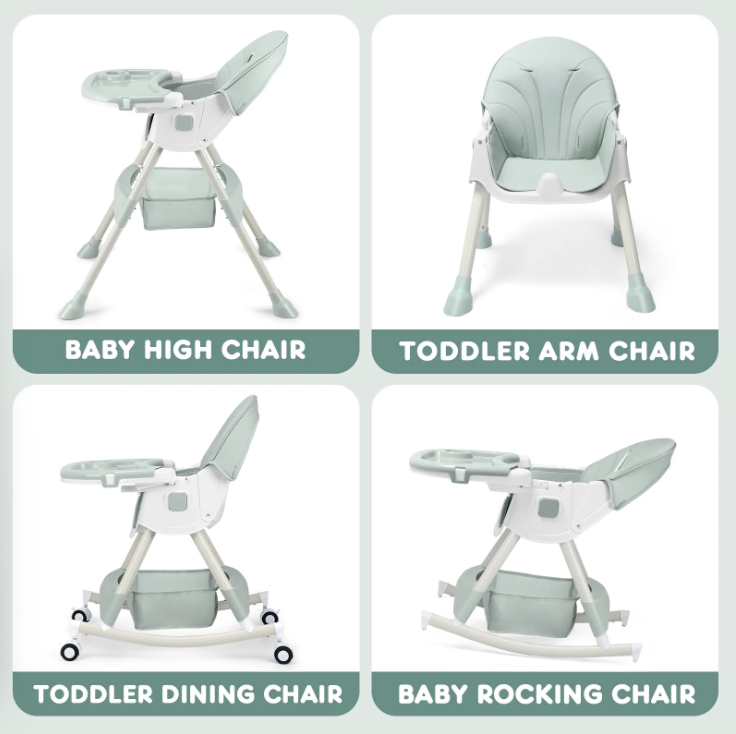 Discover the HARPPA 4-in-1 Convertible High Chair by Daiwa LTD—perfectly designed for babies and toddlers! With a stylish green finish, this versatile high chair adapts to your child’s growth, making mealtime safe and enjoyable.