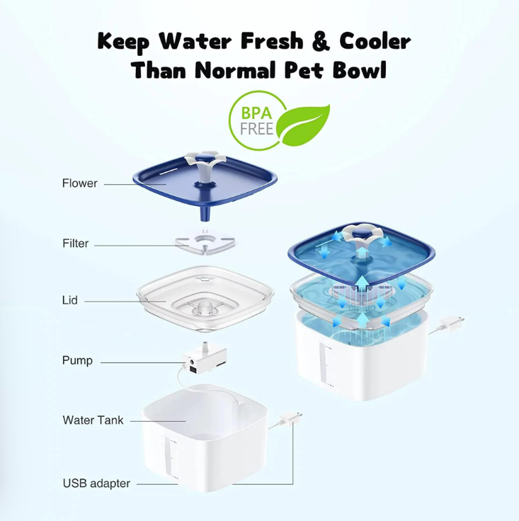 Keep your furry friends hydrated with the Daiwa LTD Ophanie 95oz Pet Fountain! This stylish water dispenser features a smart pump and anti-slip mat, ensuring your cats and dogs have fresh, flowing water all day. Perfectly designed in sleek white and blue, it’s a must-have for any pet lover!